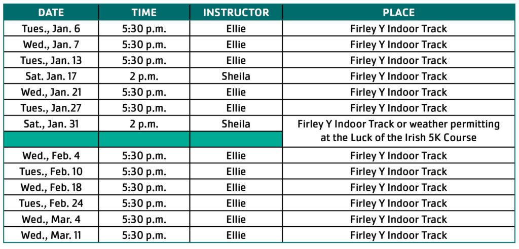 Along with the running clinics below, pop up sessions for outdoor running may be offered depending on the weather. Participants will also receive a detailed 5K training program for beginners.